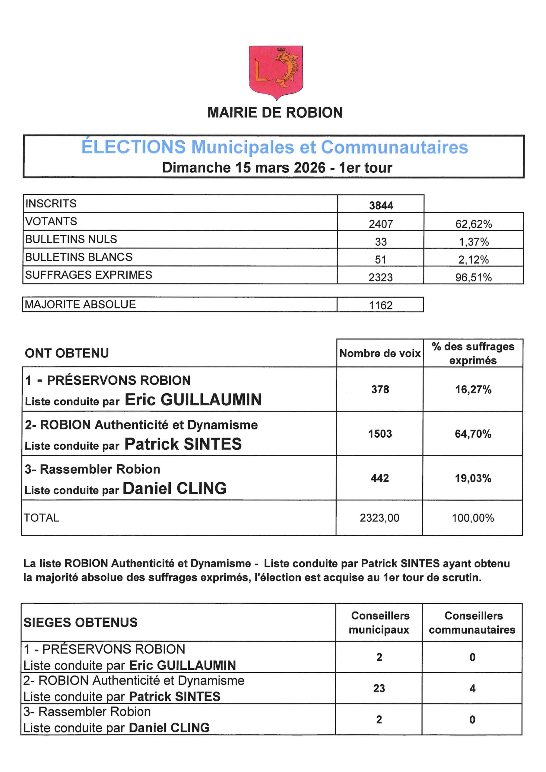 Résultats scrutins